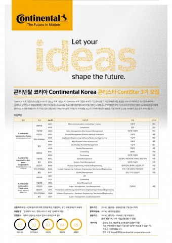 세계적인 기술 기업 콘티넨탈 코리아(대표 이혁재)가 5월 27일(일)까지 제3회 콘티스타(ContiStar) 인턴십 참가자를 모집한다.