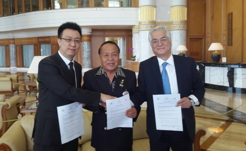 | 좌로부터 로커스체인 파운데이션 이상윤 대표이사, PELITA의 Mr. D.S.P.U, H.A.OSMAN BIN H.A.OMAR 회장이 계약 체결 후 기념촬영을 하고 있다 |
