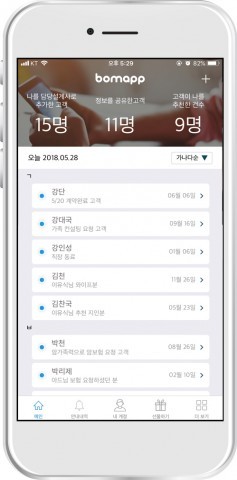 이번 ‘보맵 설계사용’ 앱에 추가된 기능은 다음과 같다. 우선 메모 기능 추가와 고객 정렬 방식의 고도화를 통해 다수의 고객도 효율적으로 관리할 수 있게 되었고, ‘보맵 설계사용’ 앱 내 선물샵 기능이 추가되어 고객의 생일 또는 기념일에 손쉽게 선물을 보낼 수 있게 되었다.