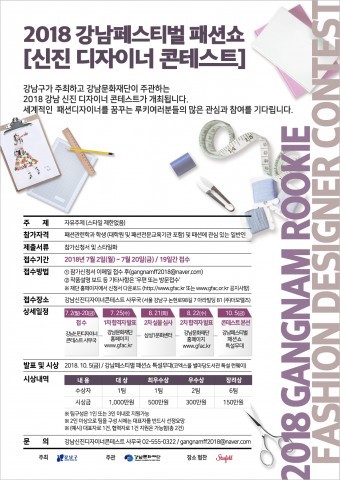 강남문화재단 문화예술팀은 신진디자이너 콘테스트는 우리나라 미래의 패션문화를 선도할 잠재력 있는 젊은 인재를 육성하고자 마련되는 자리라며 많은 신진디자이너들의 적극 참여를 바란다고 밝혔다.