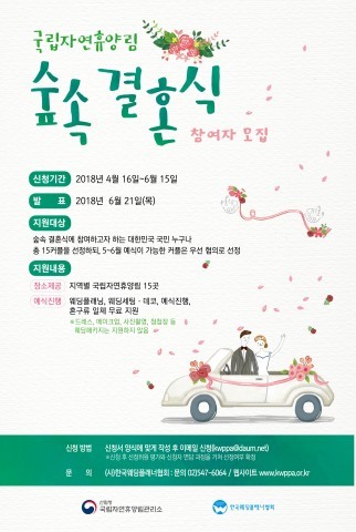| 국립자연휴양림 숲속결혼식 참여자 모집 포스터 |