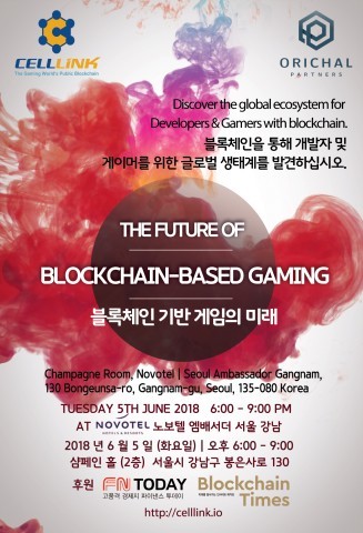 셀링크는 BLOCKCHAIN-BASED GAMING(게임의 미래 블록체인) 밋업행사를 6월 5일 오후 6시 노보텔 엠배서더 서울강남(샴페인홀)에서 개최한다고 밝혔다.
