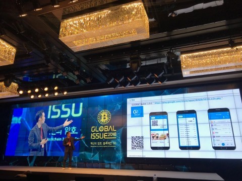 | 글로벌이슈2018에서 김성수 CEO가 오투오페이 서비스의 핵심기술 설명과 비전 계획을 발표하고 있다 |