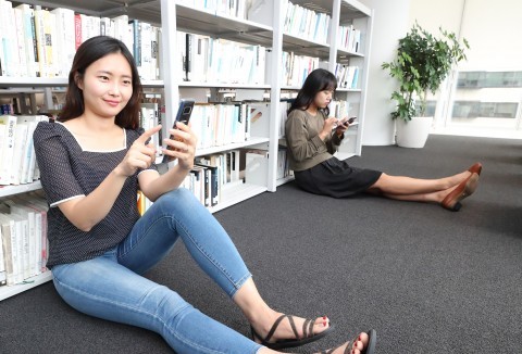 | 블라이스 이용자가 도서관에서 스마트폰을 이용해 웹소설을 읽고 있다 |