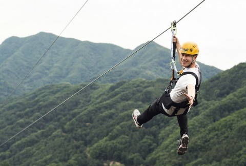 | 와이어를 이용해 하늘을 비행하는 하강스포츠 짚라인 |