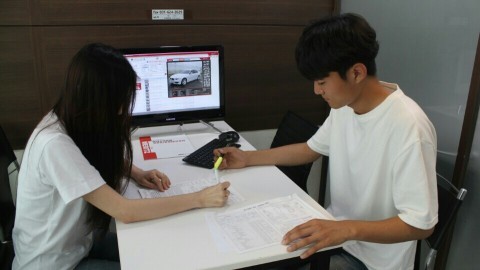 | 일품카에서 중고차를 계약하고 있는 고객 |