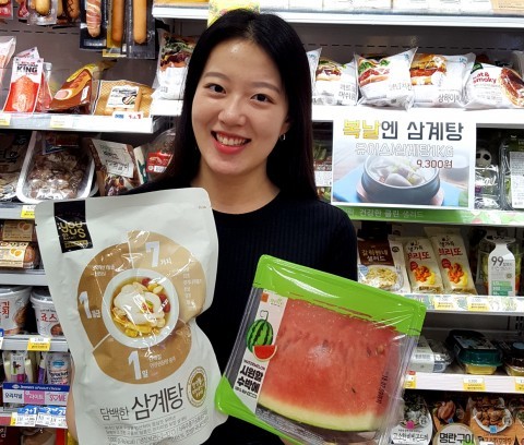 그동안 복날은 삼계탕 전문점을 방문하거나 수박 한 통을 가족과 함께 나눠 먹는 것이 일반적이었으나 1~2인 가구가 늘어나면서 가까운 편의점의 소포장 간편 먹거리로 복날 기분을 즐기는 고객들이 늘어나고 있다.