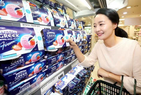 | 소비자가 풀무원 다논 그릭 프로즌 딸기맛을 고르고 있다 |