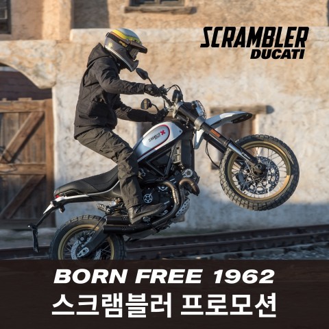 두카티 코리아는 무더운 여름이 지나고 라이딩 시즌 시작을 맞이하여, 누구나 쉽게 스크램블러 모델을 즐길 수 있도록 BORN FREE 1962 프로모션을 진행한다고 27일 밝혔다.