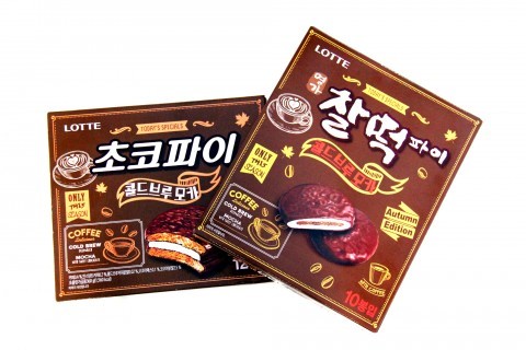 ‘초코파이 콜드브루모카’는 모카향이 풍부한 케이크와 달콤한 초콜릿, 쫀득한 마시멜로가 색다른 맛과 식감을 느끼게 한다. ‘명가 찰떡파이 콜드브루모카’는 초콜릿이 덮인 찰떡과 속에 들어간 모카크림이 조화를 이루며 독창적인 맛과 식감을 전달하는 제품이다. 이들 신제품은 패키지에 커피와 관련된 삽화를 그려 넣고, 짙은 갈색 배경으로 가을 분위기를 연출했다.
