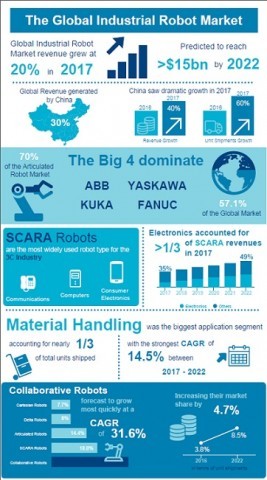 Interact Analysis가 최근 발행한 ‘세계의 산업 로봇 시장(2018년)’ 보고서에 따르면 모든 산업 분야에서의 자동화 투자 확대와 최종사용자의 다양한 요구(생산 효율 향상, 제품 품질 개선, 인건비 상승과 숙련 노동자 부족에 대한 대응 등)가 세계의 산업용 로봇 시장의 성장 촉진의 요인이 되고 있다.