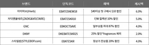 | 이베이츠 할인 프로모션 브랜드별 혜택 |
