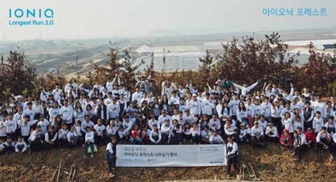 현대자동차가 환경을 생각하는 아이오닉 롱기스트런 참가자들과 나무 심기 행사를 통해 미세먼지를 막아줄 친환경 숲 ‘아이오닉 포레스트’ 조성에 나섰다.
