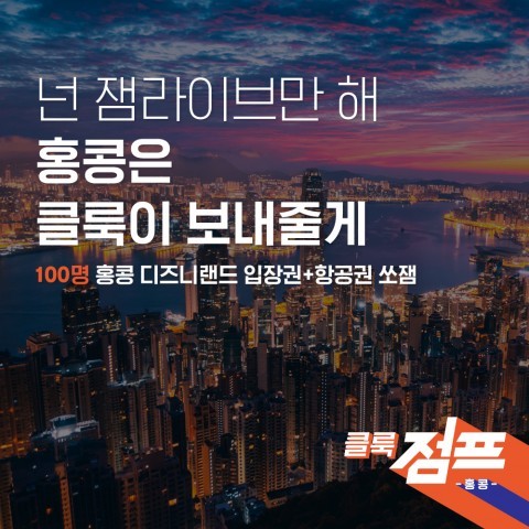 글로벌 자유여행 액티비티 플랫폼 클룩(KLOOK)이 대국민 라이브 퀴즈쇼 잼라이브와 함께 ‘홍콩 여행 특집’ 퀴즈쇼를 진행한다. 누구나, 언제 어디서든 여행을 가고 싶다면 별다른 준비 없이도 ‘클룩’만 있다면 쉽게 떠날 수 있다는 ‘클룩 점프’ 페이지 출시에 맞춘 첫 번째 이벤트다.